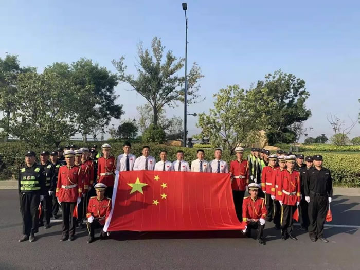 10月1日清晨,部分項(xiàng)目舉行升旗儀式。武漢保安員沐浴在朝陽(yáng)下,唱著莊嚴(yán)的國(guó)歌,目視國(guó)旗冉冉升起。這一刻,我們與全國(guó)13億同胞一起,為祖國(guó)驕傲。