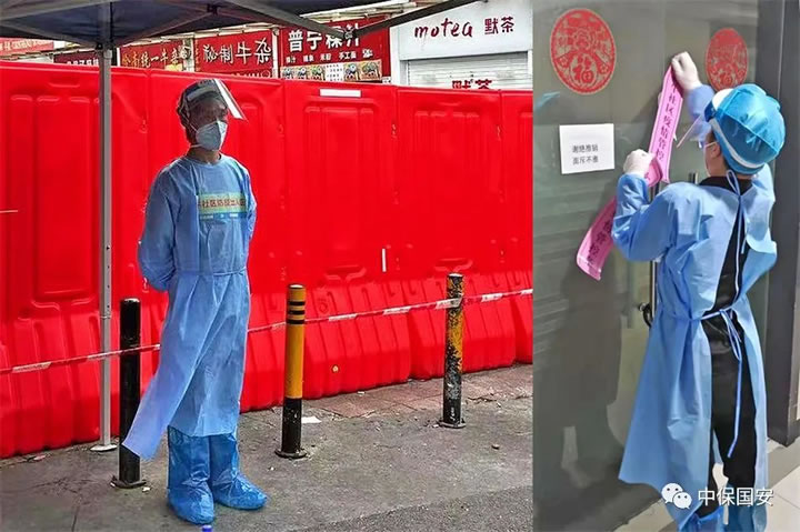 中保國安抗疫團(tuán)隊(duì)在負(fù)責(zé)的每一個封控區(qū)、管控區(qū)、防范區(qū),認(rèn)真開展樓棟封控、入口管控、核酸檢測協(xié)助、信息核驗(yàn)、秩序維持、物資運(yùn)轉(zhuǎn)等各方面工作。