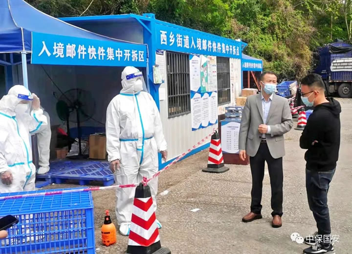 為切斷境外輸入傳播鏈條,根據(jù)《深圳市入境郵件快件取件點(diǎn)處置指引(第一版)》要求,中保國安集團(tuán)派出保安隊(duì)伍在寶安區(qū)西鄉(xiāng)街道入境郵件快件集中開拆區(qū),開展入境郵件末端投遞、快件接收環(huán)節(jié)的疫情防控工作。