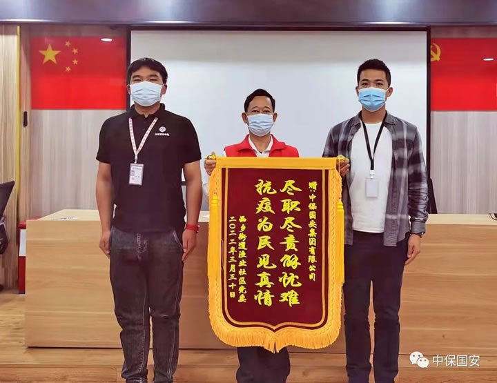 在這些艱難的日子里,抗疫一線人員最是辛苦。所有逆行者的寸點(diǎn)微光,匯聚成同心抗疫的萬丈光芒,傳遞出溫暖和力量。隨著疫情的逐漸趨穩(wěn),隨著封控的逐漸解除,中保國安集團(tuán)在各個社區(qū)的抗疫團(tuán)隊(duì)陸續(xù)完成任務(wù)、結(jié)束使命,返回原有工作崗位,在撤離前后,來自社區(qū)、居民、客戶單位和政府部門的感謝信、錦旗紛至沓來,都在表達(dá)相同的意思——“辛苦了,謝謝你”。