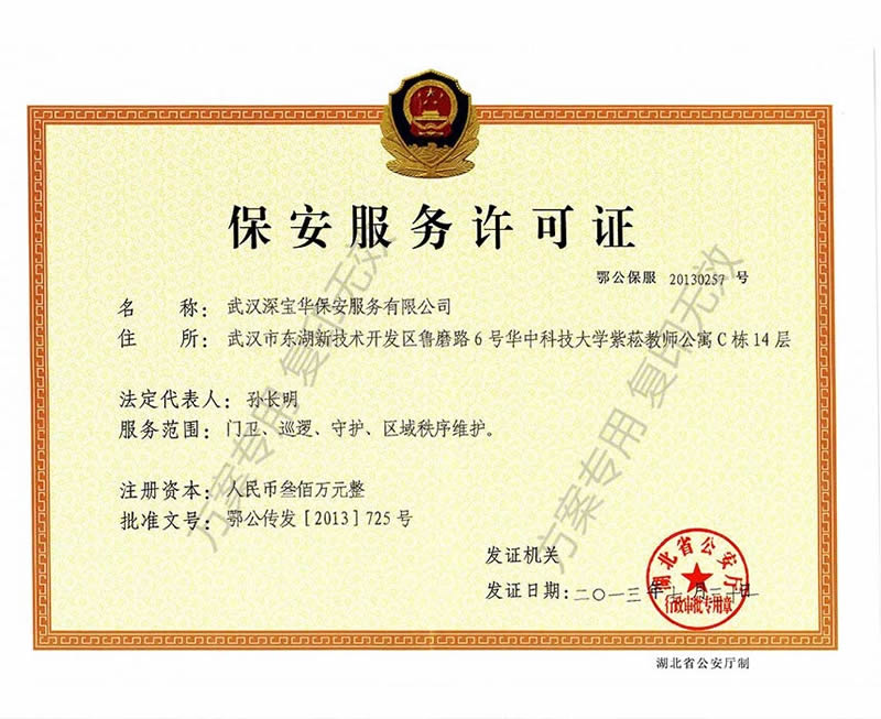 版權(quán)所有: 武漢深寶華保安服務(wù)有限公司 備案編號(hào):鄂ICP備14003256號(hào)-2 客戶(hù)服務(wù)熱線:400-991-0025 業(yè)務(wù)手機(jī):18171133333(24小時(shí)業(yè)務(wù)咨詢(xún)) 郵箱:2029246581@qq.com 網(wǎng) 址:http://www.hcyysz.com 武漢保安公司,武漢保安服務(wù)公司,武漢市保安公司
